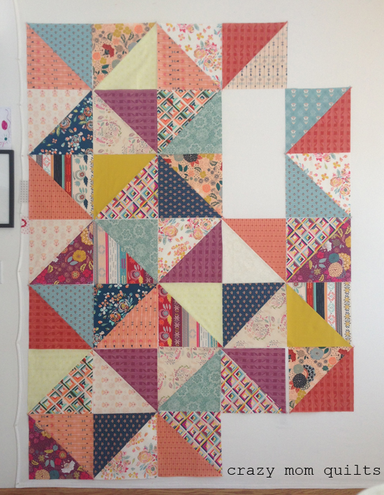 Since I'm such a hard-core scrap user, it felt a little weird to cut into so much new fabric all at once. I almost forgot what that felt like...but it sure was fun! I made the entire quilt top (and basted it!) in one Saturday. I could get used to that. :)