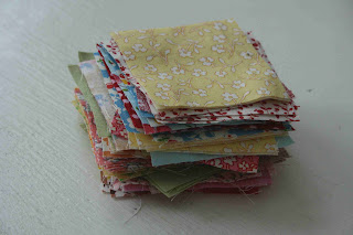 First, when I'm cutting, I put all my extra fabric in a bin that sits next to my cutting area. This is a new thing for me. I used to just throw the extras anywhere and leave them wherever they landed. It made for an extremely messy sewing room after a project. And clean up took forever. The box helps a lot. When it's full, I sort. What a novel idea. :)