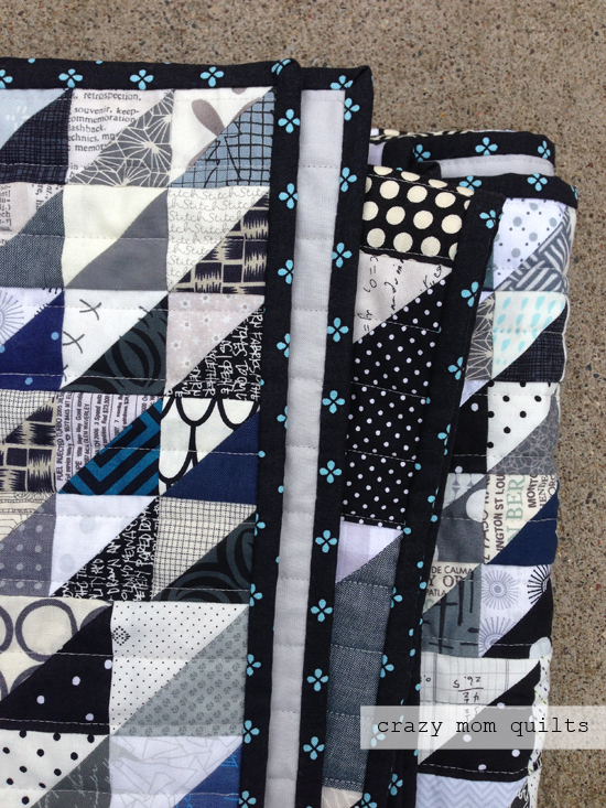 I sent this one off to the quilter for straight line quilting. I didn't want to deal with all those seams and possible distortion when quilting over hundreds of triangles. Steffani did a great job on it!