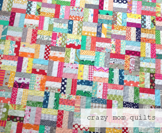 I am so glad that this one is finished! I absolutely love how it turned out! I started calling this the bruiser quilt as a joke, but the name stuck. The pattern is called All Sizes, and it can be found in my book, No Scrap Left Behind.