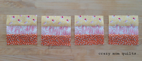 You could make more that 4 blocks at a time, if you wanted to. Personally, I prefer to have fewer blocks that are exactly the same. Playing with different fabric combinations was a lot of fun!