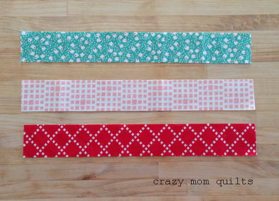 Cut 3 strips 1 1/2" x 14 1/2". Sew together and press.