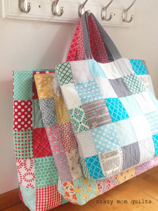 These bags were designed especially for taking quilts to show and tell at a guild meeting or large projects to a quilt retreat. A few years ago, I made a huge bag as a part of a challenge at my local quilt shop. I've used that bag an awful lot over the years. I have re-designed the bag construction and I also made it in three sizes... because one size is simply not enough!