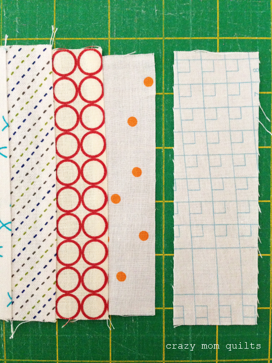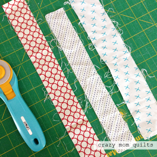 One thing I hate about working with strings is just that....they are stringy! I recommend cutting a fresh edge right before you start using the strips. It makes it easier to sew the pieces together and the finished quilt blocks will be tidier. It takes a bit more time, but it eliminates a lot of frustration.