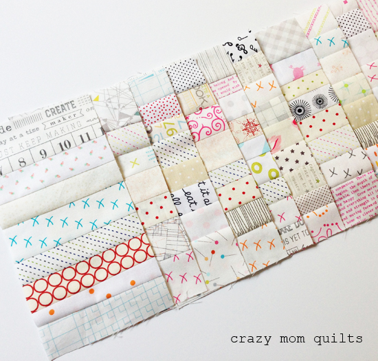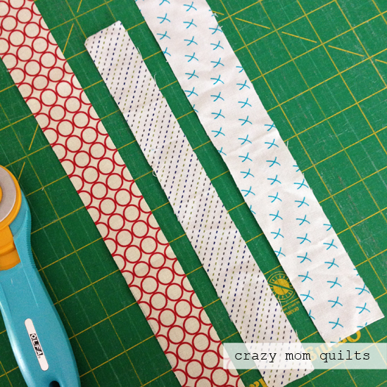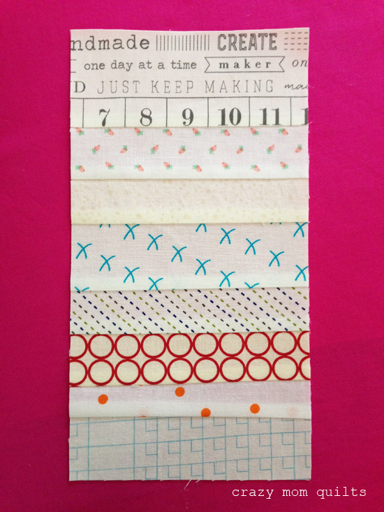 I like to work on two or three strip sets at a time. Then, I can chain piece and that makes me feel efficient. Haha!