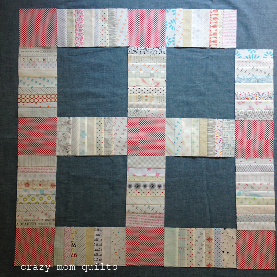 If you look closely at the block, you will notice that one of my strips was just a touch short (less than 1/16"), but that will be hidden in the seam allowance, so I am not too worried about it. If that strip would have been much shorter, I would have removed it and added a new one. :)