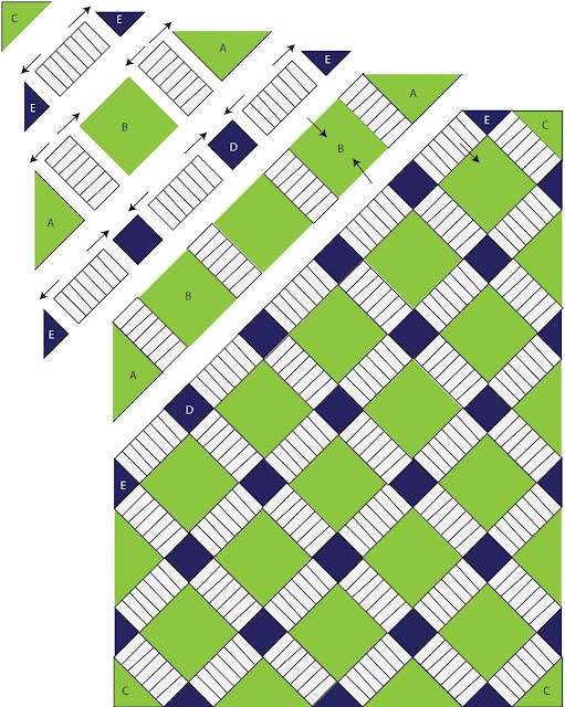 For the quilt in the book (85" square), make 100 strip set blocks.