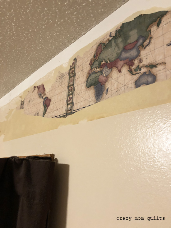 Here's the wall paper that got it's eviction notice...finally! I'm guessing that it's from the 90's? It totally overstayed it's welcome. I'm so glad it's gone, gone, GONE. This project also took several days. I am mildly disturbed that I actually ENJOYED ripping it down. (How sick it that?) I am glad that it was just a border, though. That was plenty!