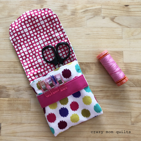 Of course this pouch would make a super cute mini sewing kit, too! That's kind of what it was designed for. hahaha! I love that you can clip the wonder clips (another great tool!) on the band. I think I might try adding a snap on the flap and use that as an alternate closure. Wouldn't that be cute?